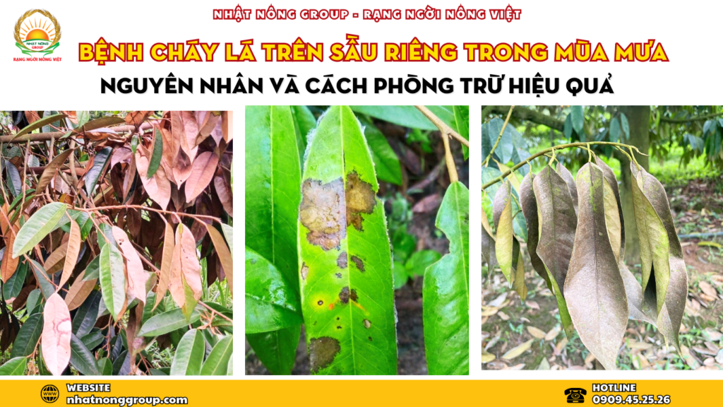 Bệnh cháy lá mùa mưa trên sầu riêng chủ yếu do nấm gây hại, kết hợp với điều kiện môi trường thuận lợi khiến bệnh bùng phát mạnh.