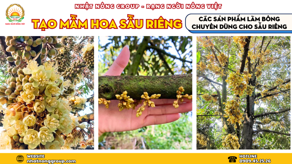 Cách tạo mầm hoa sầu riêng hiệu quả giúp cây ra hoa đồng loạt, bông có khỏe và tỷ lệ đậu trái. Nhất là trong điều kiện mưa nhiều, độ ẩm cao, cây dễ ra đọt non – thì việc kích thích cây phân hóa mầm hoa đúng thời điểm càng trở nên quan trọng.