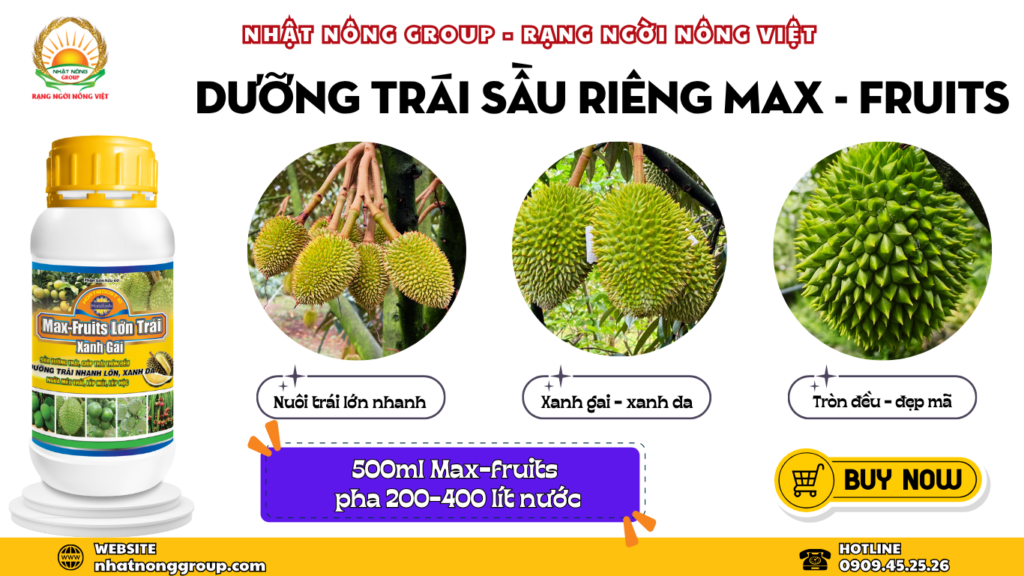 MAX FRUITS – Giải pháp dinh dưỡng hoàn chỉnh cho trái sầu riêng đẹp, cơm ngon, giá trị cao