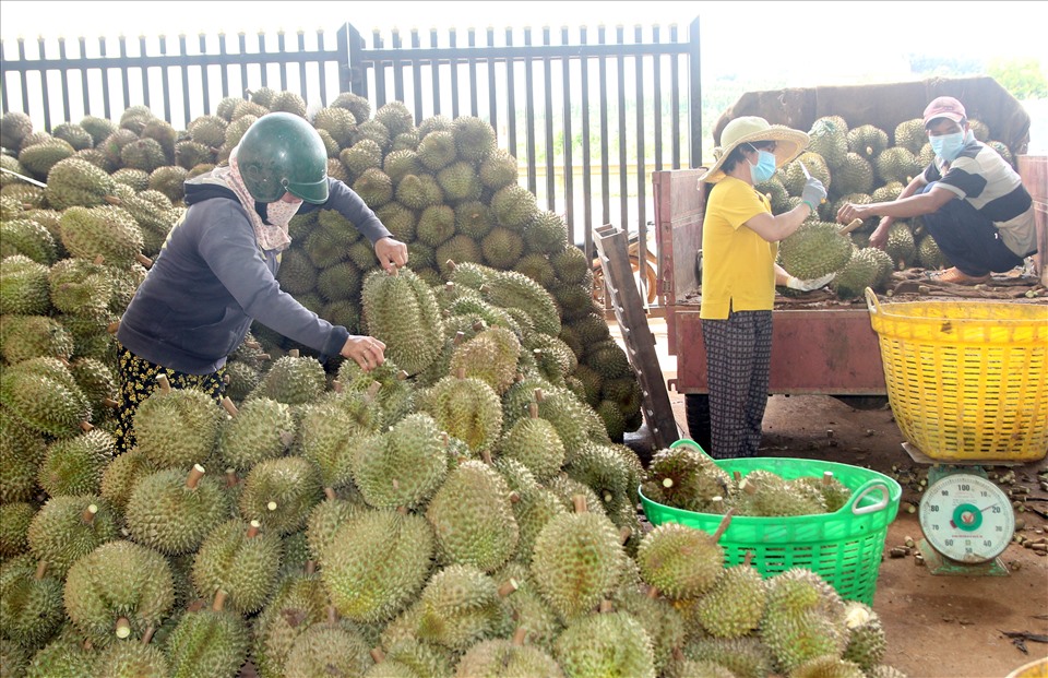 Do dịch COVID-19 nên việc vận chuyển, tiêu thụ sầu riêng ở các tỉnh Tây Nguyên đang gặp nhiều khó khăn. Ảnh: Phan Tuấn